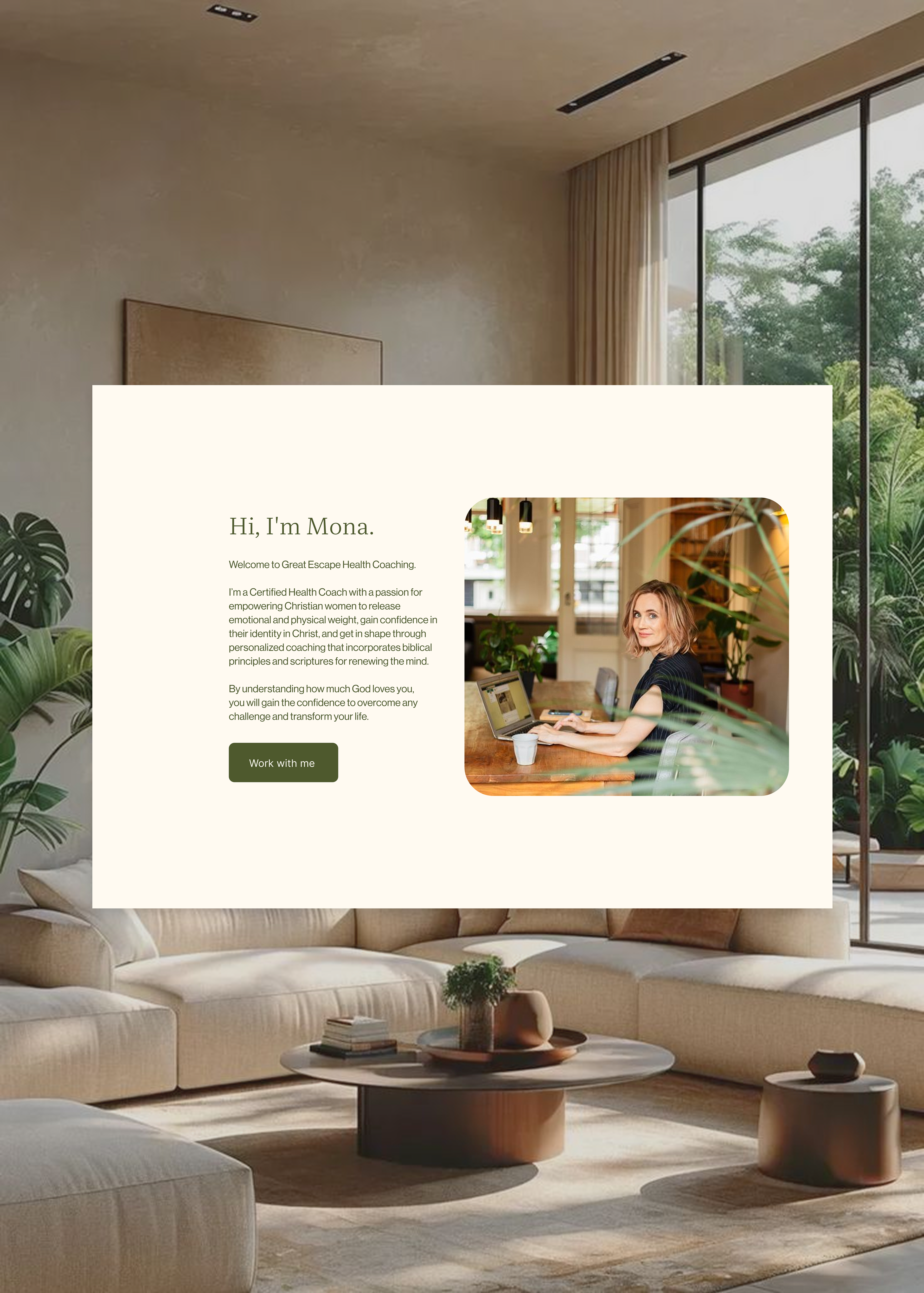 Great Escape Health Coaching is a Christ-centered wellness brand founded by Mona Aubry, serving Christian women over 30 who desire lasting health rooted in faith.